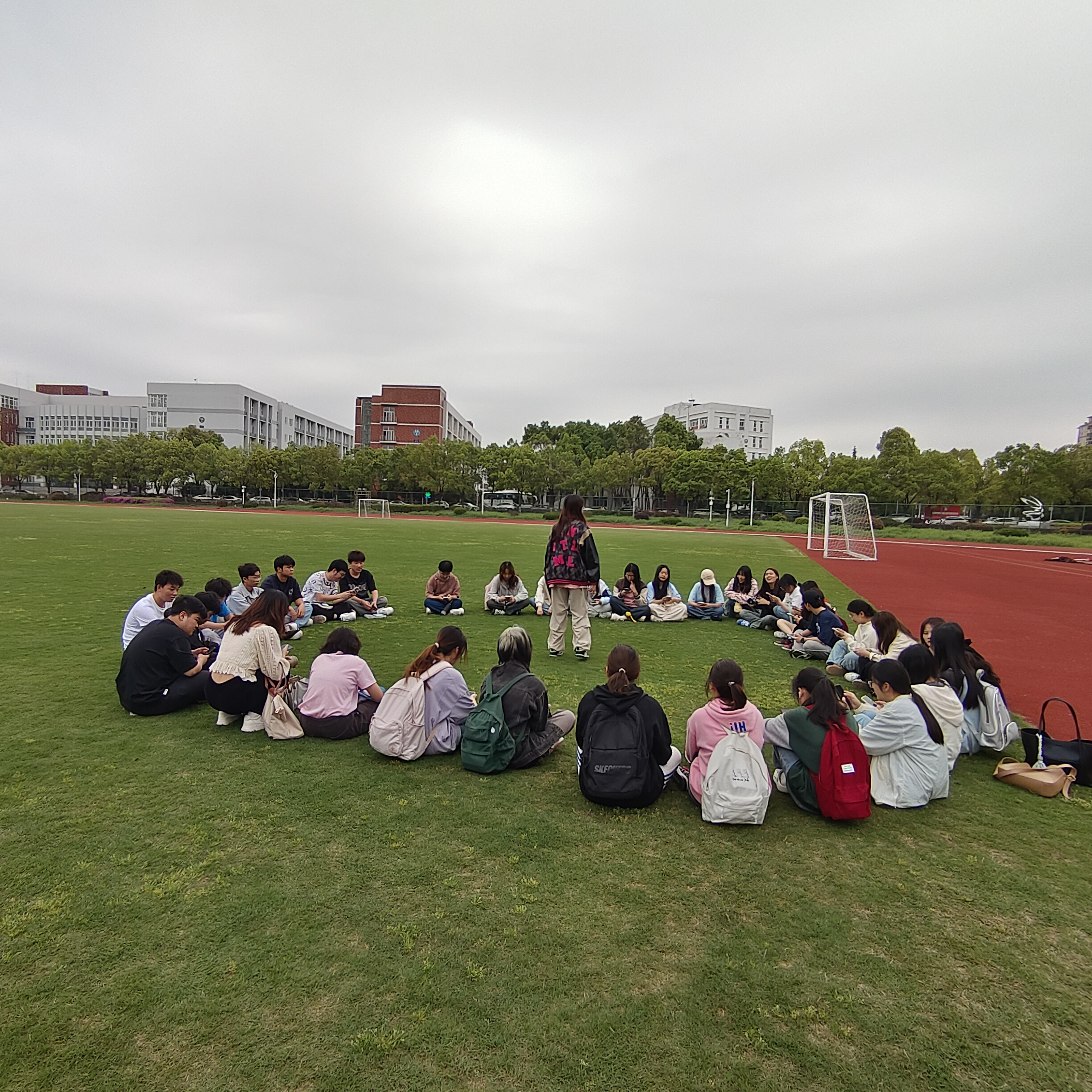 考虑到在户外的环境中大家能够更好地放松心情,融入大自然,从而关注自己的心理健康,该班在北区操场开展户外运动游戏,由班长讲解游戏规则,通过桃花朵朵开等趣味小游戏促进同学们的团结和交流合作,拉进距离,增强班级的凝聚力。