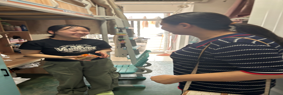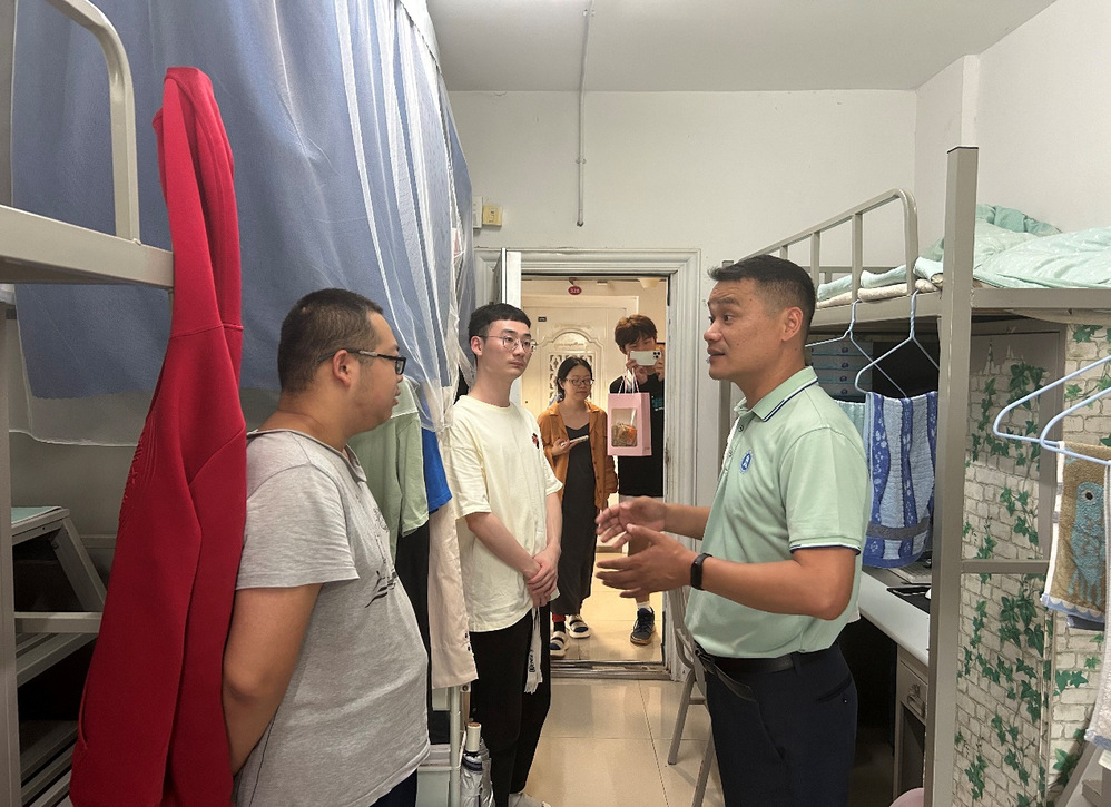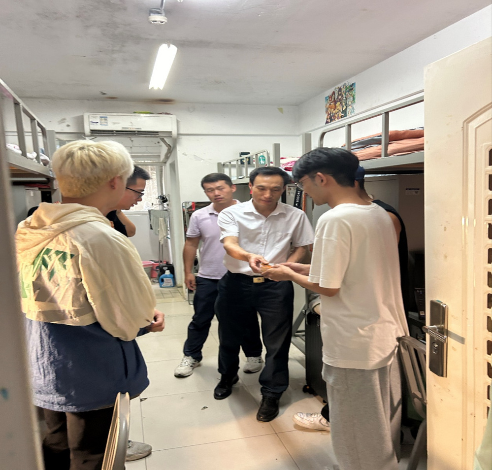 走访过程中,学院党政负责人王玉波走进寝室,关心地询问了开学两周以来同学们的生活情况和大学计划,特意嘱咐同学们要立志高远,好好学习专业知识,做好个人和寝室卫生,做一个德才兼备、知行合一的新时代大学生。学院党政负责人王玉波亲切地和同学们交谈,他说:“虽然中秋不能回家与家人团聚,但生活和学习上的困难随时都可以找学院和老师们帮忙。”同时,他还勉励同学们要珍惜大学四年时光,要心无旁骛地在最美大学求知问学。