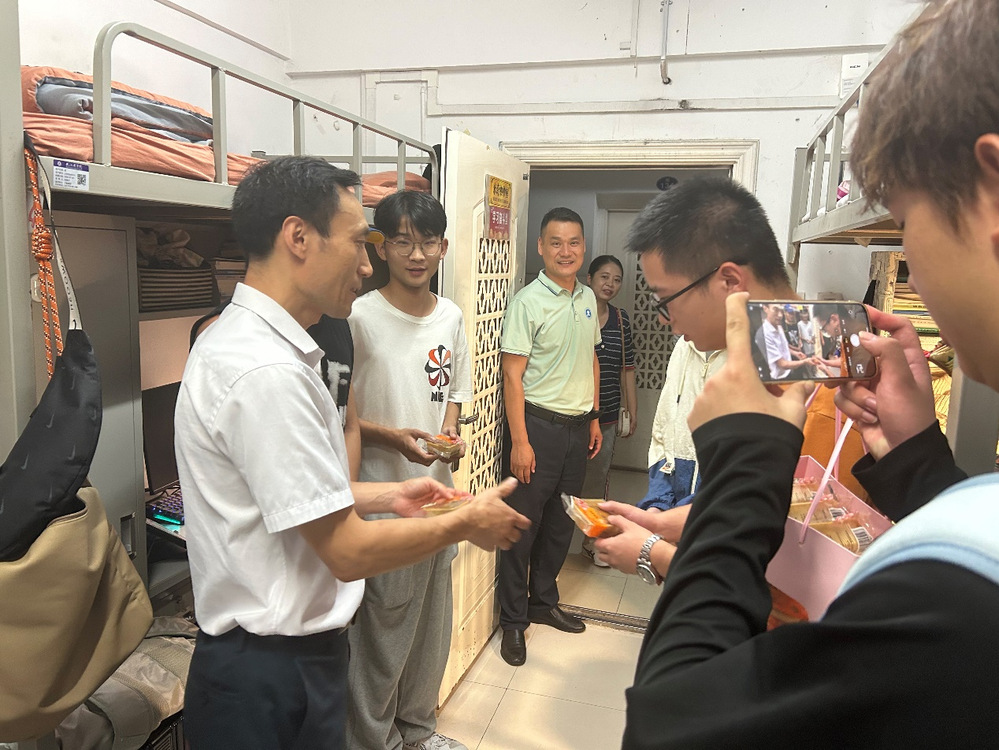“浓浓师生情,润物细无声。” 9月13日,球友会QY千亿入口党政负责人王玉波带领学院党委副书记方武、教学与科研工作负责人杨芳和辅导员刘桢、舒靖钧、王明丽、李筱雅老师在中秋佳节前夕分组走访慰问全院学生,学院领导和辅导员为所有学生送上了学院精心准备的中秋慰问月饼,给全院学生送上学院的关心和问候,带去节日的祝福与嘱托。
