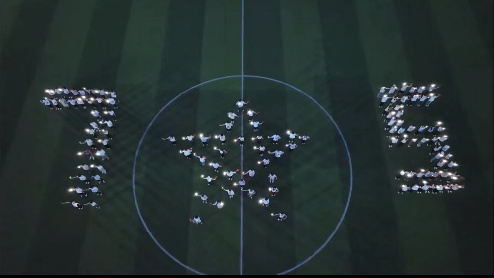 球友会QY千亿入口同学们以独特的创意和饱满的热情,摆成了象征祖国75周年华诞的“7”和“5”字样以及一个巨大的五角星,脸上洋溢着自豪和激动的神情。他们齐声高唱爱国歌曲《我和我的祖国》,歌声嘹亮,充满激情,声音响彻整个校园。他们用自己的声音,诉说着对祖国的深深热爱。在歌曲快结束时,他们齐声高喊“祝祖国繁荣昌盛,国泰民安!”旗帜在他们手中挥舞,现场的气氛被推向了高潮,慷慨激昂的声音响彻了整个校园!