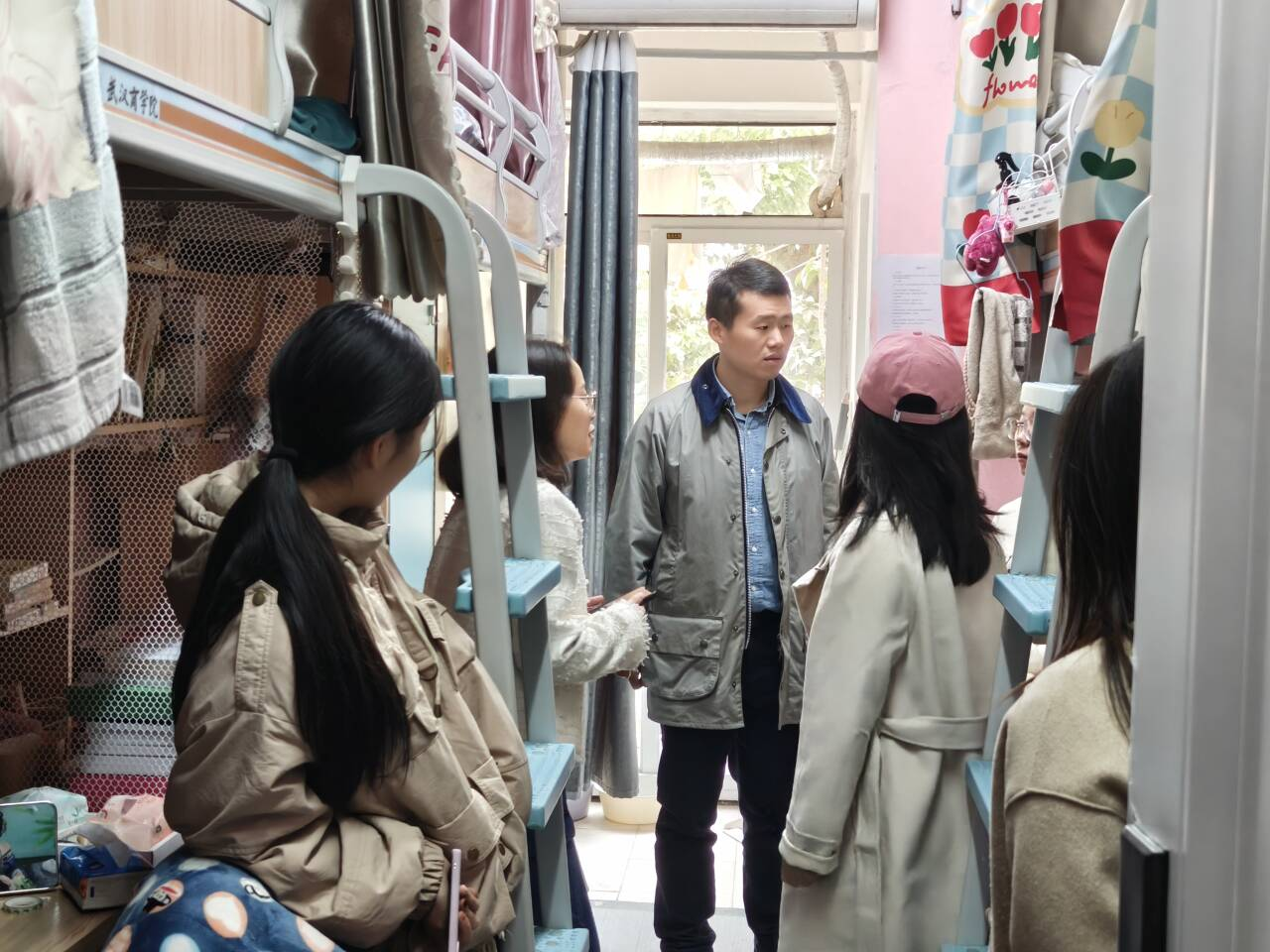 为了落实学校和学院学生安全工作会议精神,深入了解学院学生学习和生活中遇到的困难,及时化解矛盾纠纷,关心关爱学生。11月19日-11月22日,球友会QY千亿入口党政负责人王玉波、党委副书记方武,带领学院全体辅导员、班主任老师走访慰问学生寝室,了解学生的困难和需求,摸排学生群体中遇见的矛盾和问题,提醒学生注意防火、防盗、防诈骗、防纠纷矛盾、防交通安全意外发生。