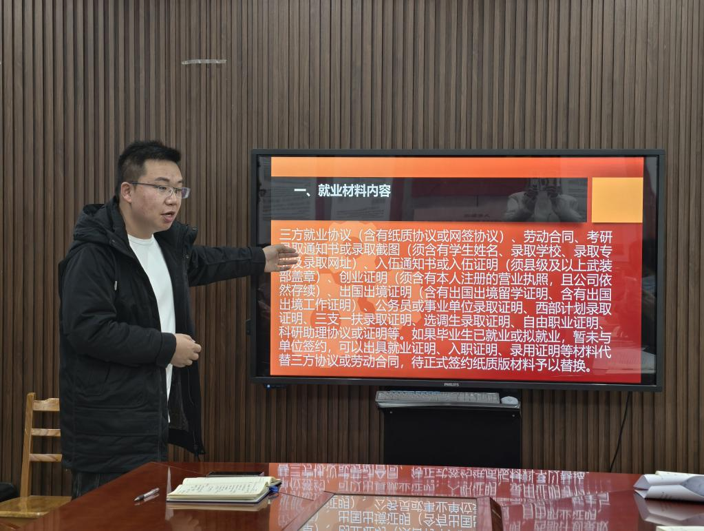 (学生工作办公室主任刘桢开展就业材料规范性培训讲解)