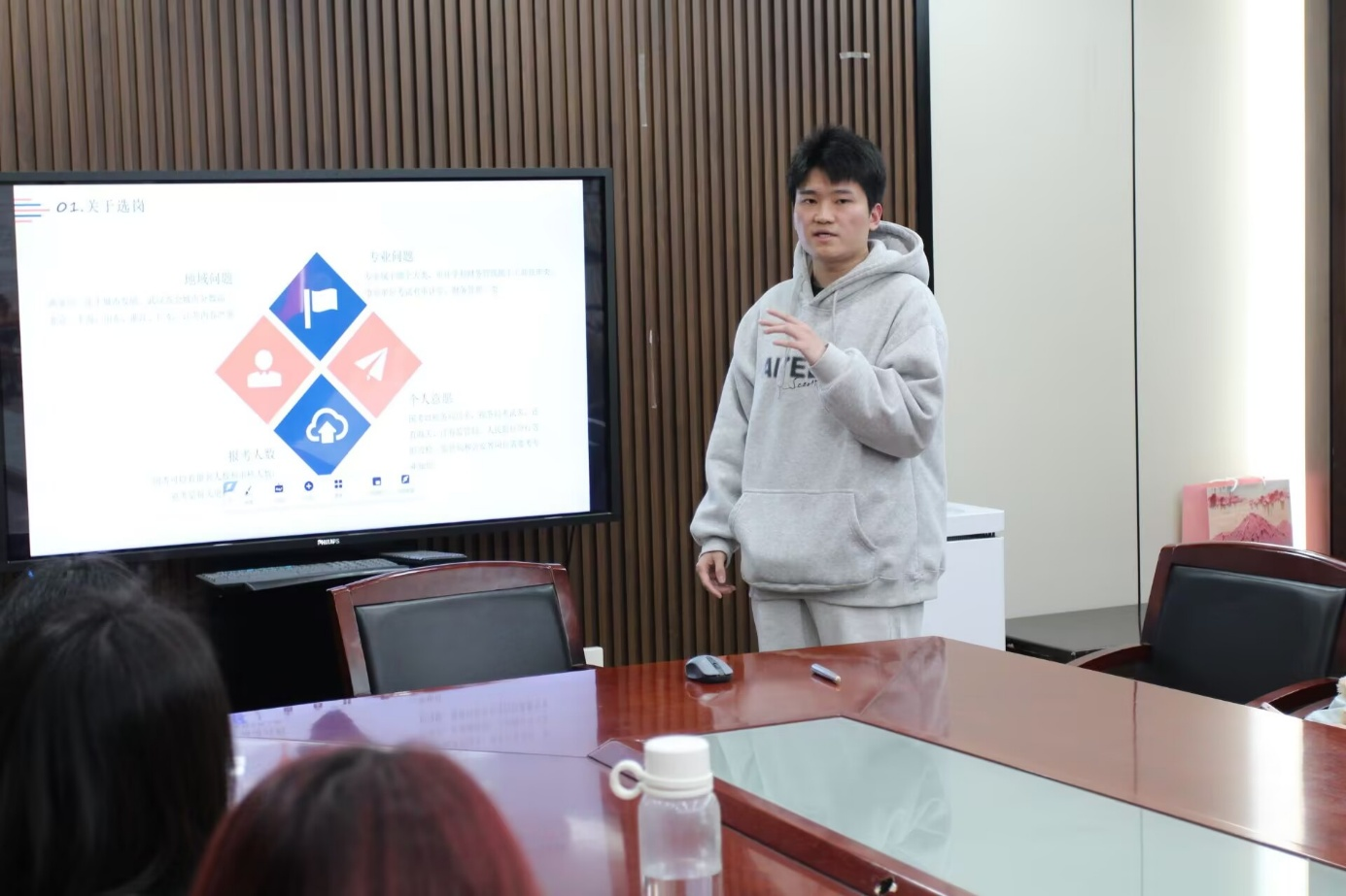 21级审计学的王赞竣为主讲人,他首先介绍了大三学生可能会准备的考试,包括国考,省考,选调生,三支一扶,西部计划等多种考试,为大三学生进行了一个较为详细的介绍以及各种考试之间的重难点。王赞竣以自身经历为时间线条,相继介绍了最合适的备考时间,备考方法,笔试考试中比较困难的部分,面试的方式以及需要注意的方面。在笔试学习方面更是提出了切实的建议,如保持固定的刷题量,适当放松不要太过紧绷,但是要保证熟练度,提出一些只有亲历过的人才会有的小细节,后期要注重纸质刷题提前适应考场。王赞竣的讲解拨开未来迷雾,为大三学生理出一条有关考公的清晰线条。