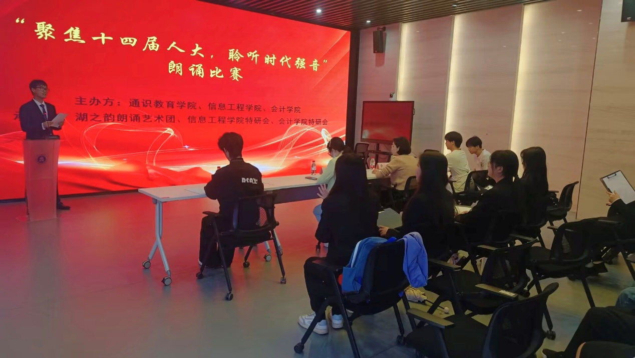 为深入学习贯彻两会精神,引导青年学子厚植家国情怀、坚定制度自信。中国特色社会主义研习会会计分会于4月24日12:30~13:40在智慧党建成功召开“聚焦十四人大,聆听时代强音”主题朗诵比赛。