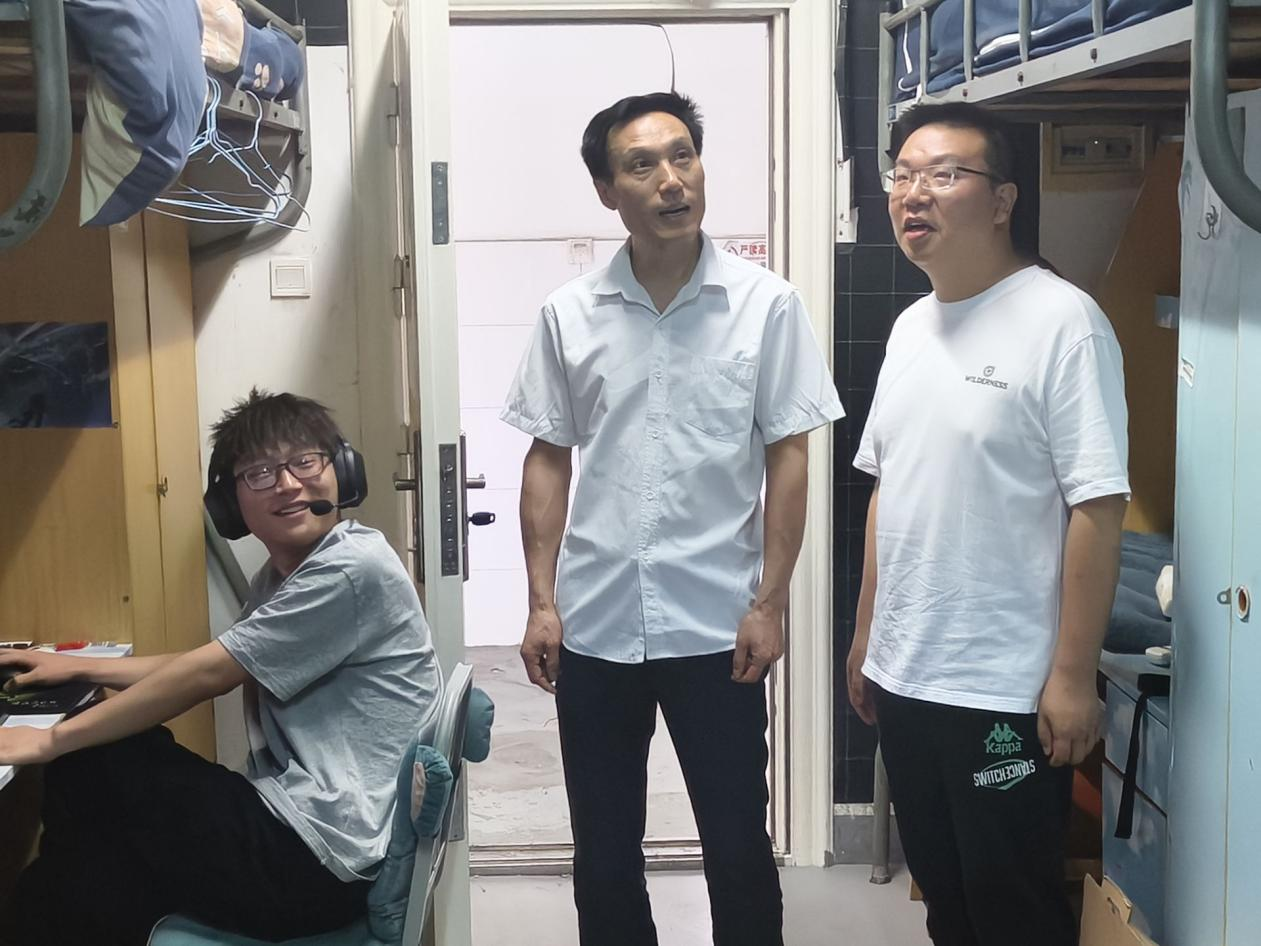 在关注寝室卫生与安全状况之余,学院党政负责人王玉波与同学们进行了深入沟通交流。他着重关心同学们学习与生活方面的情况,认真听取同学们提出的意见和建议。同时,鼓励同学们积极参与宿舍文化建设活动,共同营造温馨且和谐的宿舍环境。