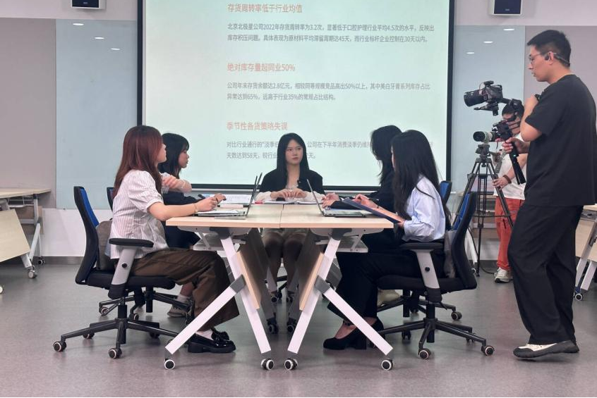 除了参观学习,此次北京之行的核心任务之一是拍摄专业教学视频《审计风云》。特别值得一提的是,该视频的脚本由学生团队与陶燕老师共同创作,目的在于通过生动的案例分析和实际操作演示,让学生们能够更直观地掌握审计学的理论知识和实务操作。在视频拍摄过程中,陶燕老师和杨萍老师不仅亲自指导学生,还与正保远程教育的制作团队紧密合作,确保视频内容的专业性和实用性。