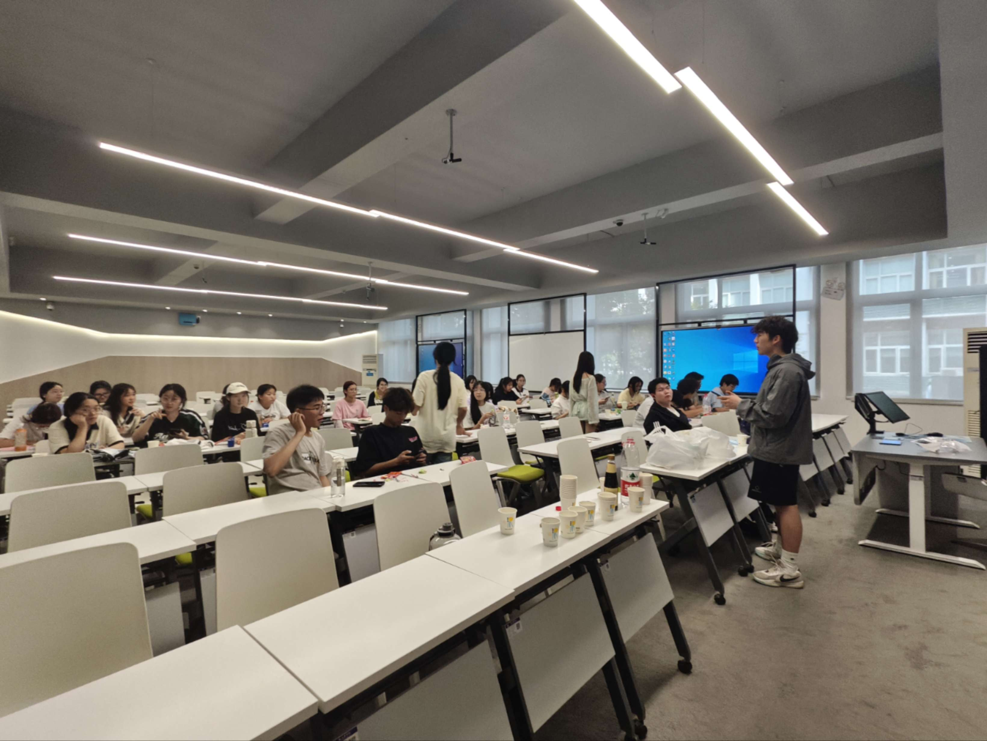在“妙笔传意,画猜寻踪”游戏中,每组首位同学拿到成语题目后开始作画,画作在组员间依次传递,最后由每组末位同学猜测最初的成语。游戏过程中,每位同学都认真观察并绘制,奇思妙想与细致观察碰撞出火花,现场气氛热烈非凡,充满了欢声笑语。这一游戏不仅考验了大家的想象力、观察力,更让团队默契在无形中得到提升。“音为梦响,乐动人心”猜歌挑战掀起了活动高潮。以小组为单位抢答猜歌名,唱出歌词还能额外加分。同学们沉浸在熟悉的旋律中,积极抢答,仿佛瞬间忘记了所有烦恼。在这个过程中,大家不仅放松了身心,团队协作能力也得到了锻炼,整个现场其乐融融。