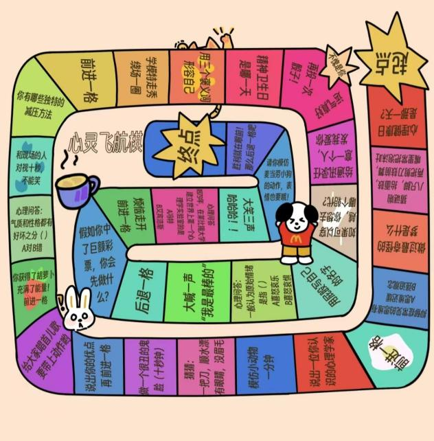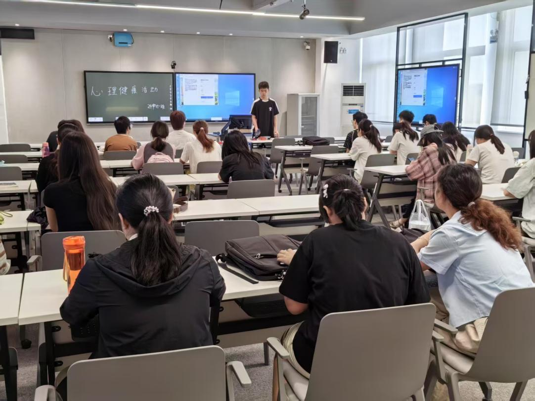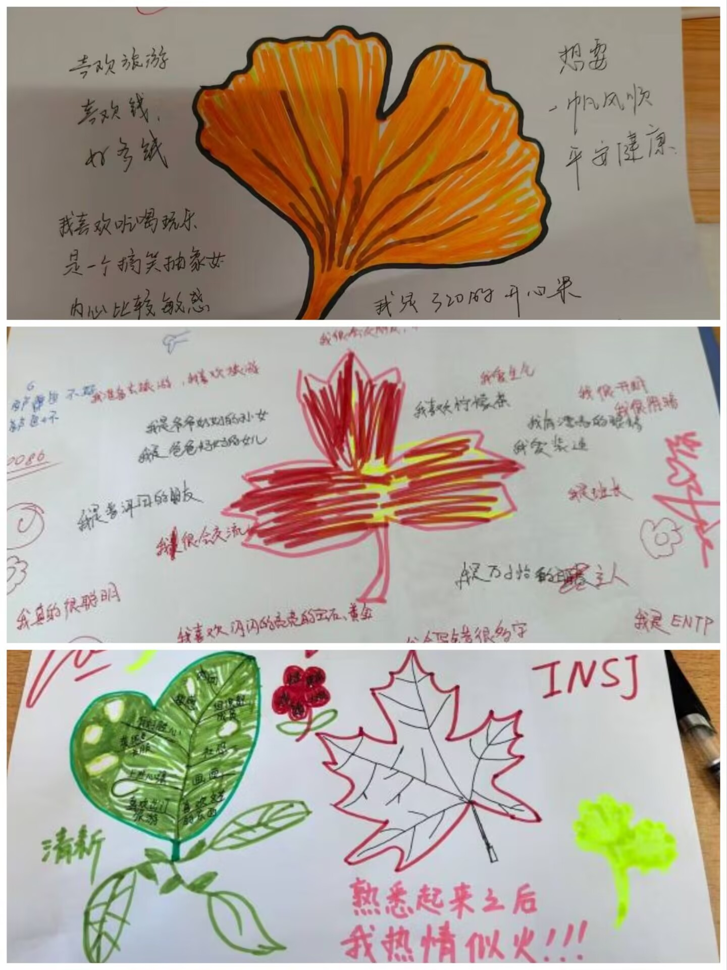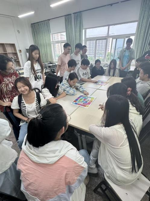 活动现场氛围热烈,形式丰富多样。热场阶段的“赞美效应”环节,同学们五人一组分组互相分享、夸赞,在收获他人认可的同时拉近了距离,增强了自我认知。心理飞行棋游戏中,大家自由组队、相互协作,在完成棋盘任务的过程中,放松了心情。你画我猜环节更是充满欢声笑语,画手与猜手密切配合,考验着彼此的默契和想象力。拼贴诗游戏时,同学们围绕“爱自己”“亲情、友情、爱情”“梦想”主题,共同创作,在艺术创作中表达内心感受。活动末尾,心理委员播放心理健康教育视频,普及相关知识,强化了同学们的心理保健意识。