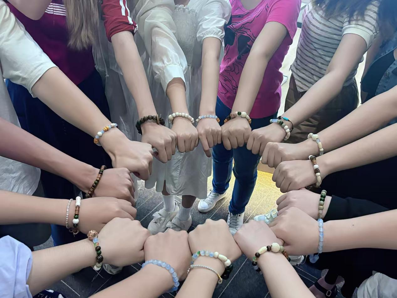 在“情绪手链DIY”环节,组织委员准备了彩色绳子、木质珠子等材料,引导大家用颜色标记情绪状态——红色绳结代表近期的愤怒时刻,蓝色珠子串起平静瞬间,绿色丝线缠绕着期待的心情。其中,木质珠子样式多样,有圆润的南瓜珠、刻着简单纹路的椭圆珠,还有镂空雕花的小圆柱,同学们挑选心仪的珠子串在绳间,边编织边交流,手工创作让抽象情绪有了可视化表达,也打开了彼此倾诉的窗口。