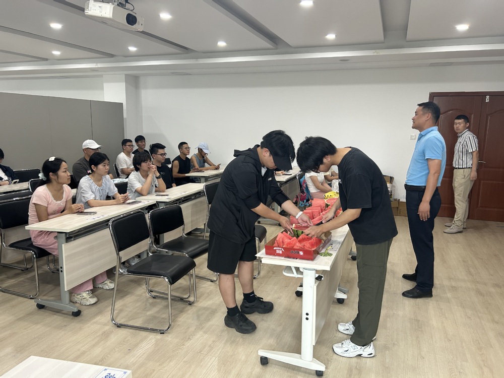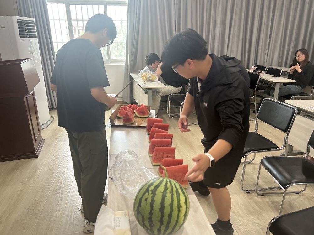 刘桢老师与舒靖钧老师也分别从学习规划、宿舍安全、生活细节等方面送上叮嘱:“暑期时间宝贵,既要抓紧学习,也要保证休息” ,“宿舍用电要规范,有任何困难随时找老师”。活动现场,方武书记为同学们分发清甜西瓜,红瓤绿皮间,驱散了夏日燥热,更传递着学院的贴心关怀。