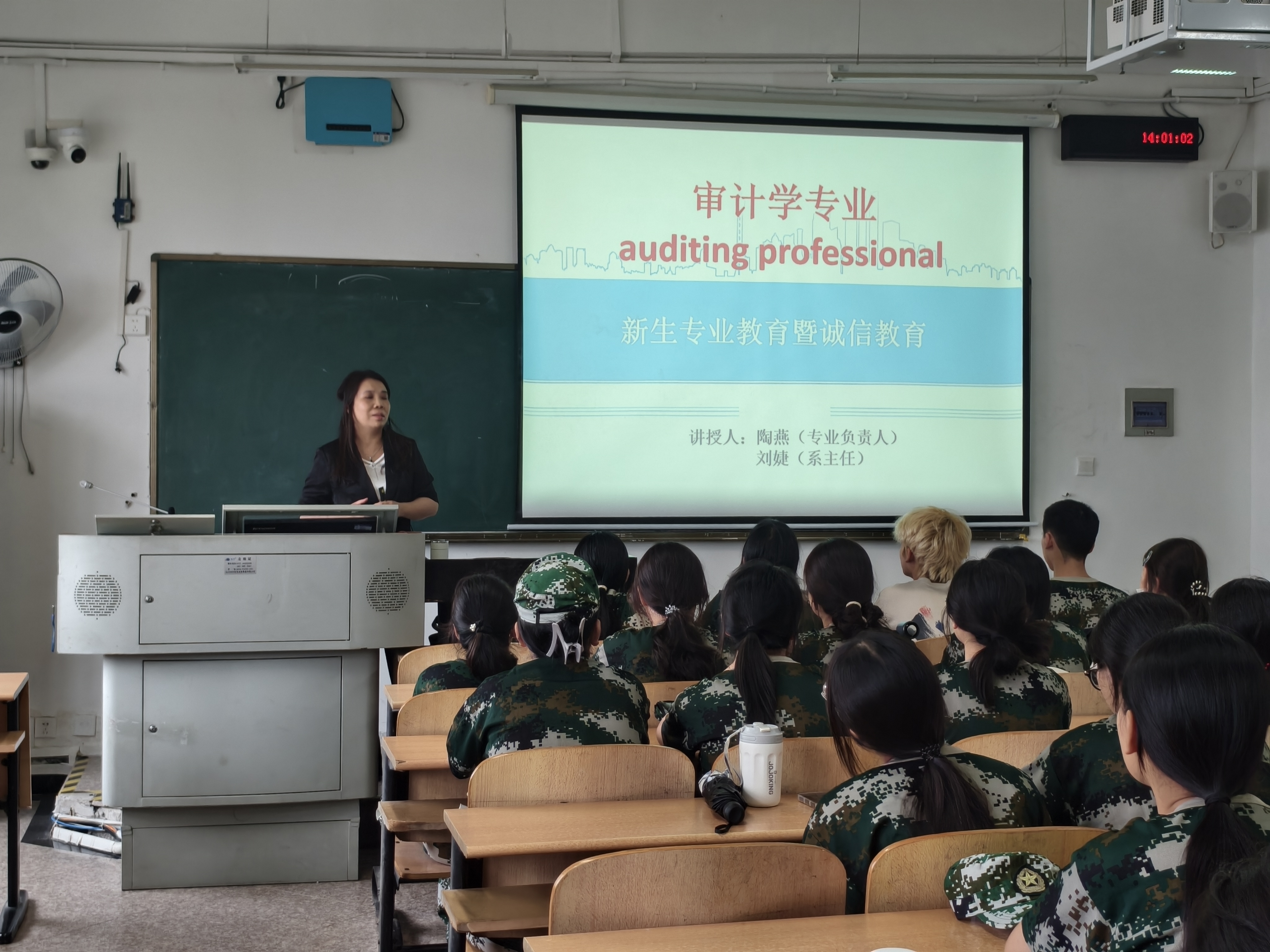 为进一步强化2025级新生的专业认知,助力他们更快适应大学生活、明确专业方向,9月9日下午,球友会QY千亿入口于北四403、北四111、北一608教室分专业开展了2025级新生专业教育活动。财务管理系主任刘慧、专业负责人宋文娟;审计系主任刘婕、专业负责人陶燕;会计系主任张娜依、专业负责人杜小艳、副主任向媛媛,2025级新生辅导员王明丽老师以及2025级全体新生共同参与了此次活动。