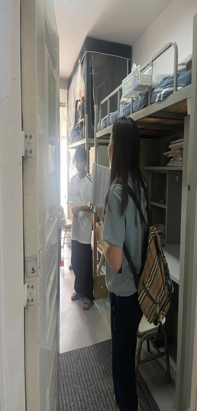 走访过程中,王玉波院长耐心询问同学们的日常生活和学业情况,尤其关心寝室氛围的营造。他强调,和谐融洽的寝室关系是大学生活的重要基础,希望同学们互相关心、互相包容,共同维护良好的居住环境。此外,王院长还特别提醒同学们要高度重视防火安全,注意用电规范,杜绝使用违规电器,切实保障人身和财产安全。方武书记则从网络安全角度对同学们提出殷切期望。他嘱咐大家要自觉遵守网络法律法规,增强信息安全意识,做到“不跟贴、不翻墙、不随便评论”,理性对待网络信息,避免卷入不良舆论环境,共同营造清朗的网络空间。