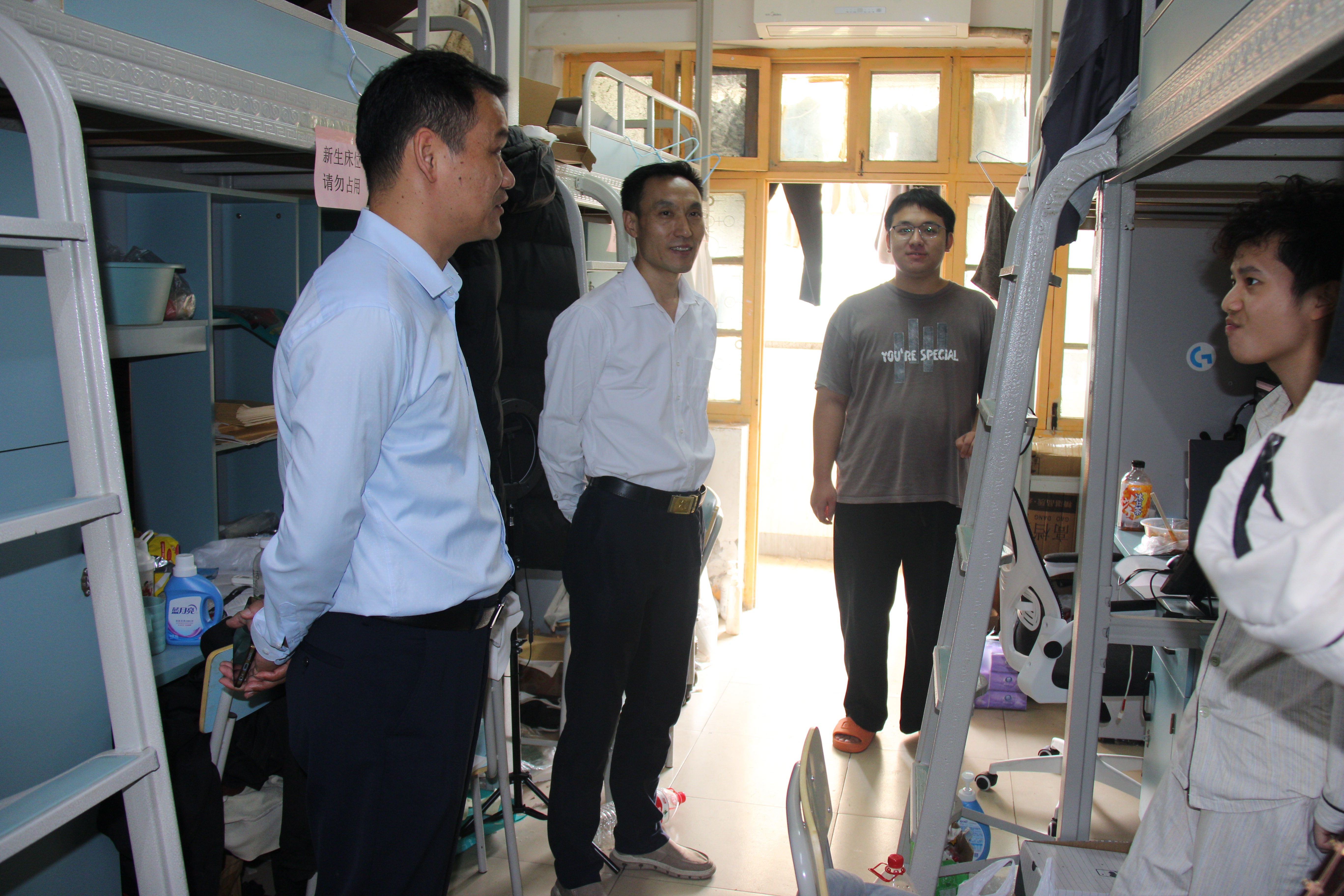 走访过程中,王玉波院长耐心询问同学们的日常生活和学业情况,尤其关心寝室氛围的营造。他强调,和谐融洽的寝室关系是大学生活的重要基础,希望同学们互相关心、互相包容,共同维护良好的居住环境。此外,王院长还特别提醒同学们要高度重视防火安全,注意用电规范,杜绝使用违规电器,切实保障人身和财产安全。方武书记则从网络安全角度对同学们提出殷切期望。他嘱咐大家要自觉遵守网络法律法规,增强信息安全意识,做到“不跟贴、不翻墙、不随便评论”,理性对待网络信息,避免卷入不良舆论环境,共同营造清朗的网络空间。