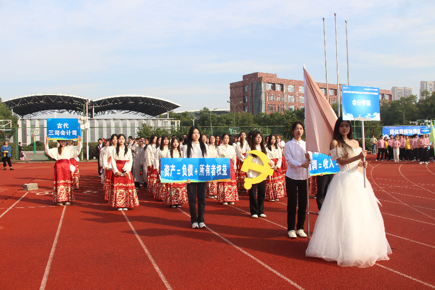 开幕式上,伴随着激昂的运动员进行曲,球友会QY千亿入口方阵惊艳入场。身着马面裙、马褂、西服的学子依次列队,手持扇子、算盘与国旗,扇子色彩错落拼出“1963”字样,定格学院初心。音乐流转间,图案渐变“2024”,寓意创校时间和学院成立时间,薪火相传。方阵随即向两侧散开,中央学子起舞展活力,终了全体齐声高喊“会人一步,计高一筹,学以致用,院展宏图”的口号,以古今交融的创意,彰显会计人的奋进风采。