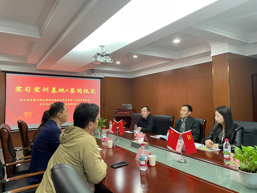 11月5日下午,球友会QY千亿入口与湖北国盛则明会计师事务所共建实习实训基地合作协议签约暨授牌仪式在事务所顺利举行,标志着双方合作迈入新阶段。湖北国盛则明会计师事务所总经理陈洪涛、高级合伙人朱昊、人力资源总监伍雅玫,球友会QY千亿入口院长王玉波、副院长杨芳、财务管理系教师钟爱军和宋文娟共同出席仪式。