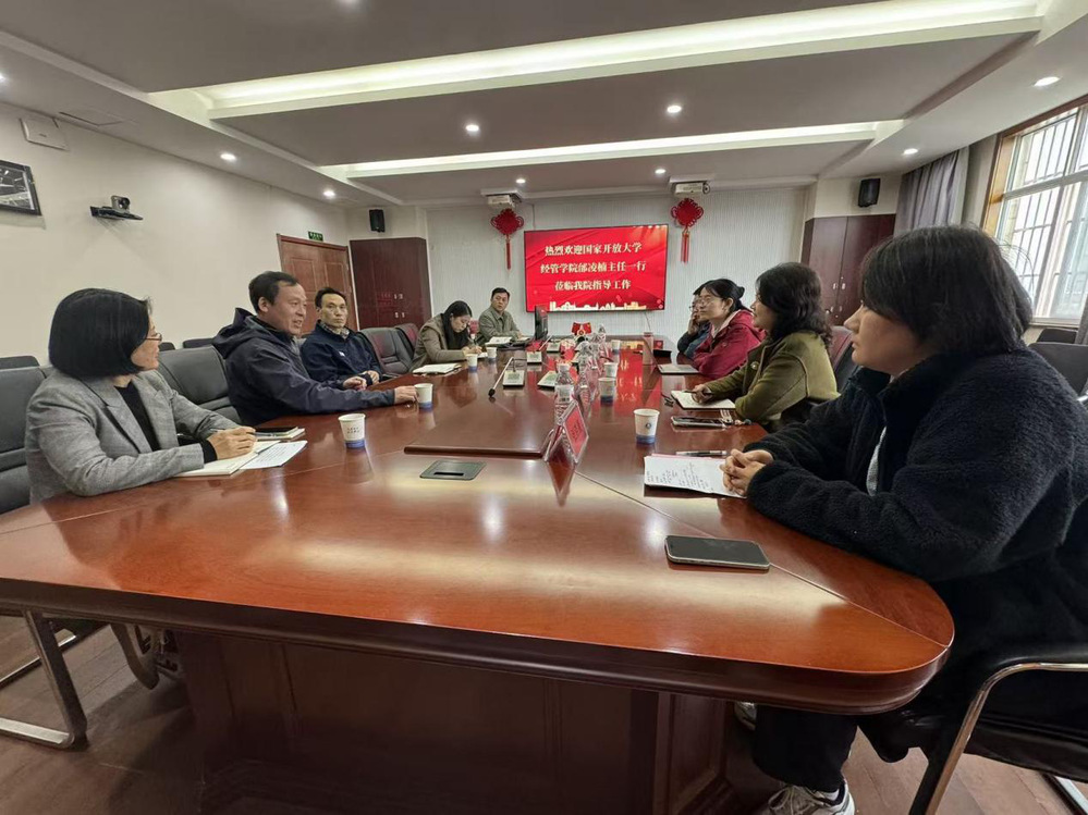 国家开放大学经管学院邰凌楠主任一行4人莅临球友会QY千亿入口进行专题调研与指导。学院院长王玉波、副院长杨芳、会计系系主任张娜依、钟爱军教授等老师热情接待了邰凌楠主任一行,双方在学院会议室举行了深入的交流座谈会。