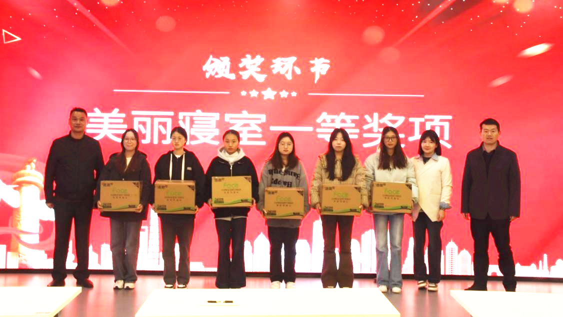 学校对本次评选上“美丽寝室”的寝室代表发送相应奖品。在颁奖环节中,获评一等奖的寝室代表从学校代表手中接过奖品,这一奖品既是对优秀寝室环境建设成果的肯定,也让“以评促优”的激励机制落到实处。学校通过物质奖励的形式,既强化了获奖寝室的集体荣誉感,也以榜样示范效应带动更多学生重视寝室环境、主动参与内务建设,推动整洁、和谐的寝室氛围成为校园文明的常态。