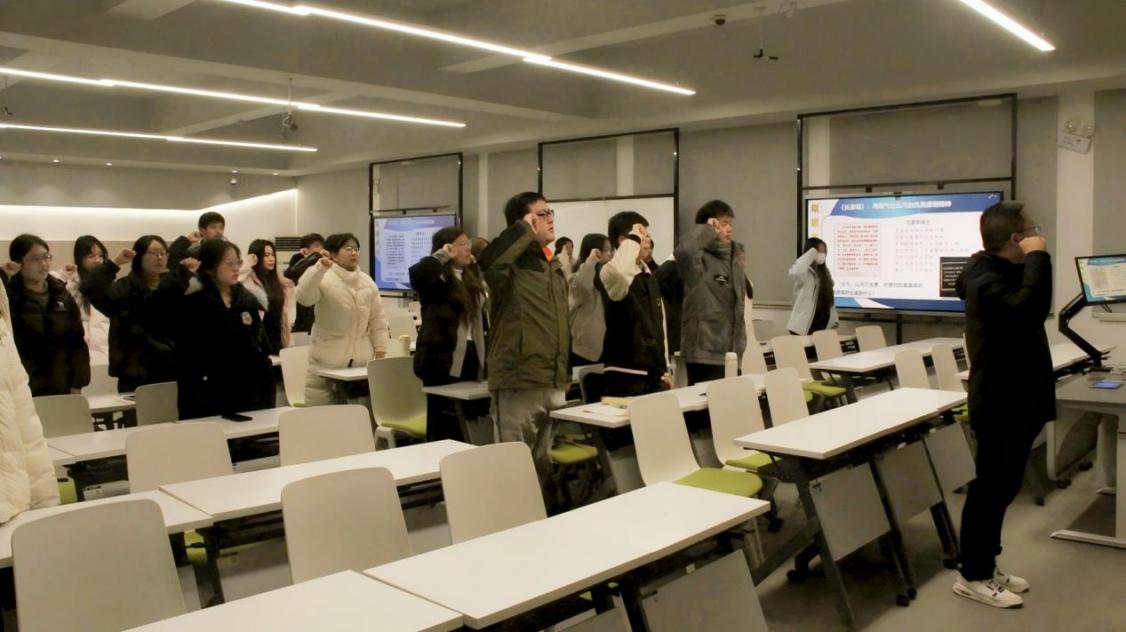 课程尾声,刘桢老师带领全体团学骨干面向团旗庄严宣誓,誓词铿锵有力:“我志愿传承伟大抗美援朝精神,铭记历史、缅怀先烈,坚定理想信念,锤炼过硬本领…”,宣誓现场,学员们高举右拳、声音洪亮,庄严的誓词既是对革命先烈的致敬,更是对自身使命的承诺。