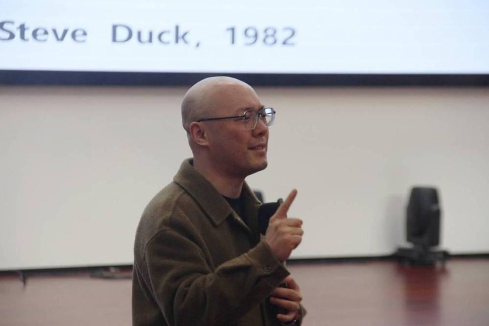 在“爱情的到来”篇章,余老师结合埃里克森人格发展理论,强调18-24岁成年早期培养爱的能力的重要性。他拆解了人际关系发展的四大原则——接近性、相似性、相互性与吸引力,指出无论是日久生情还是一见钟情,想要建立良好的恋爱关系,既要主动靠近、寻找共鸣,也要学会正向反馈、展现自身魅力。同时,他还介绍了盖瑞查普曼的“五种爱的语言”,提醒同学们在恋爱中要读懂对方的情感需求,用恰当的方式表达爱意,避免破坏性互动,多做建设性行为,用心维系亲密关系。